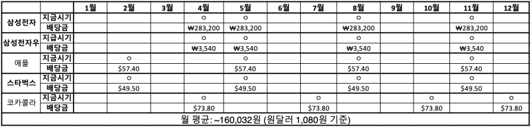 현재 포트폴리오로 월 160,032원이 배당소득으로 들어오고 있으며 (배당금 증가 속도가 늦네요...ㅠㅜ)