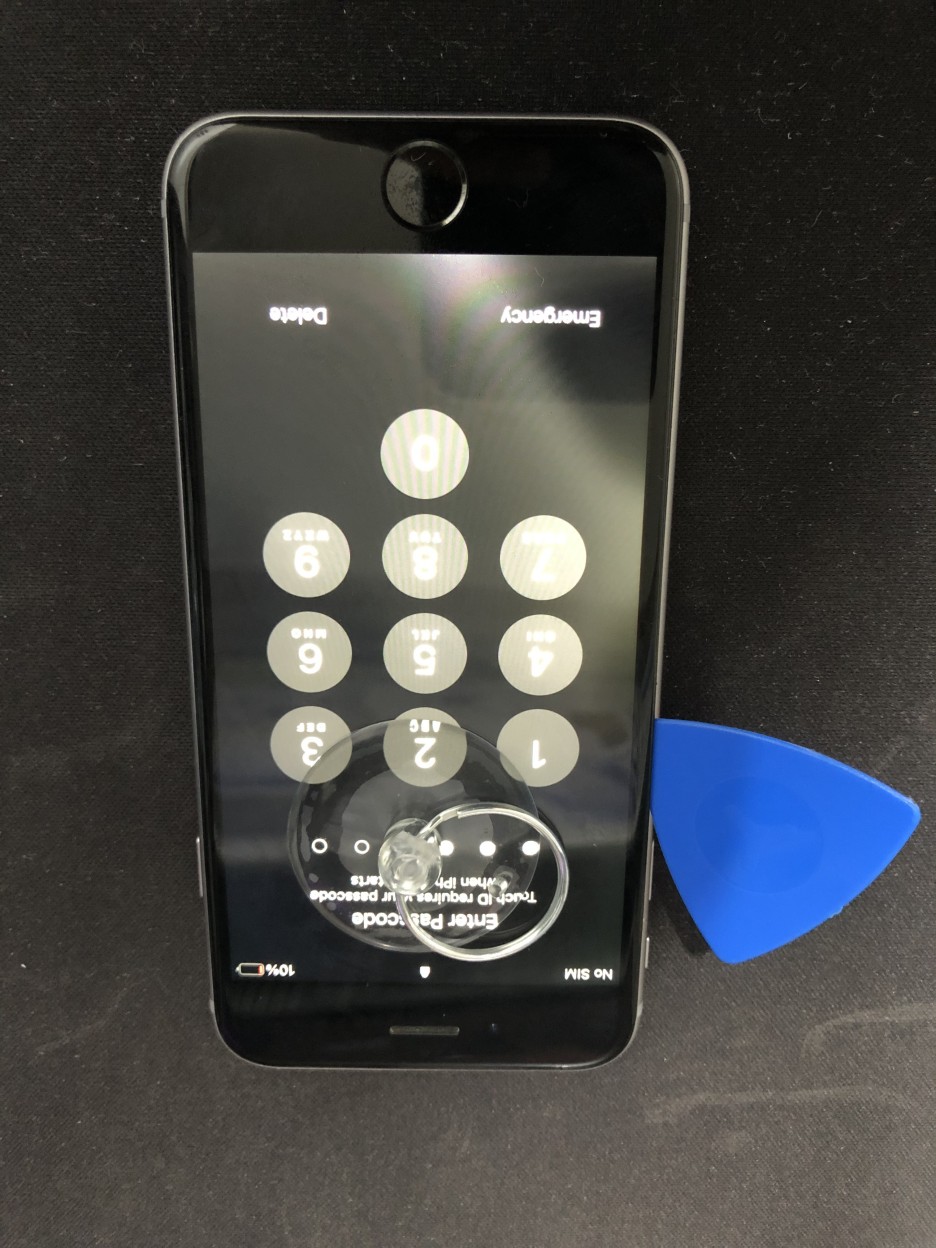 화면과 핸드폰 본체 사이를 기타픽?을 사용하여 틈새를 벌린 후