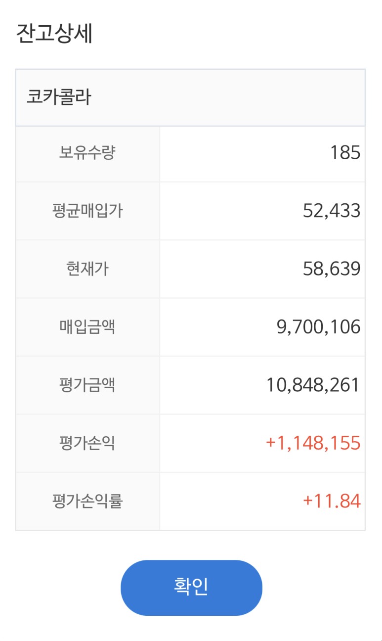 총 코카콜라 보유주식이 185주로 증가하였습니다^^