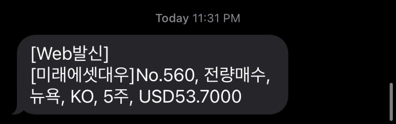미국 장이 열리자마자 바~~~로 코카콜라 주식을 주당 $53.70에 5주를 매수하였고
