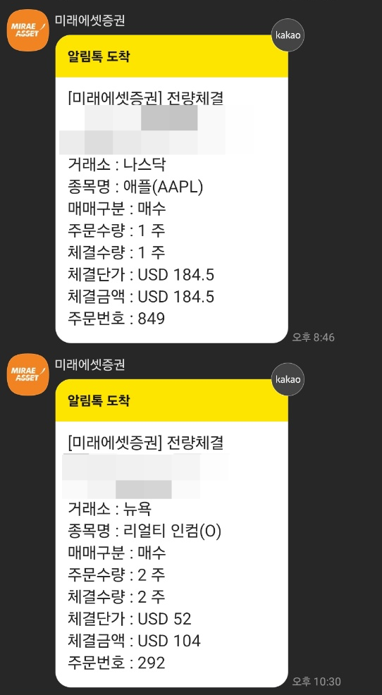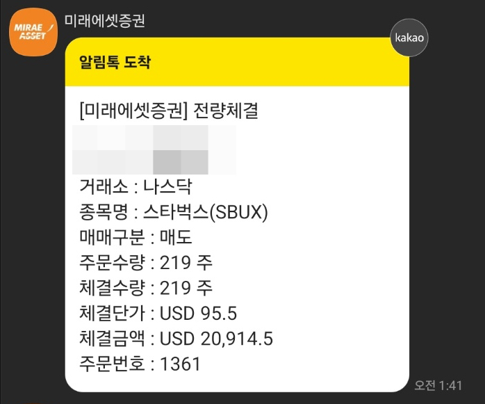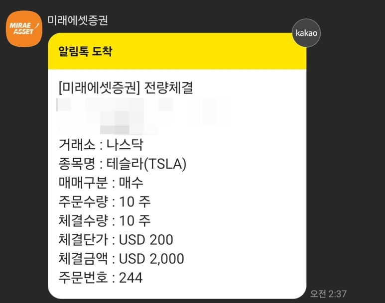 어제 자기전 주당 $200에 예약매수를 하고 자고 일어나보니 매수가 된 것을 확인하였습니다~