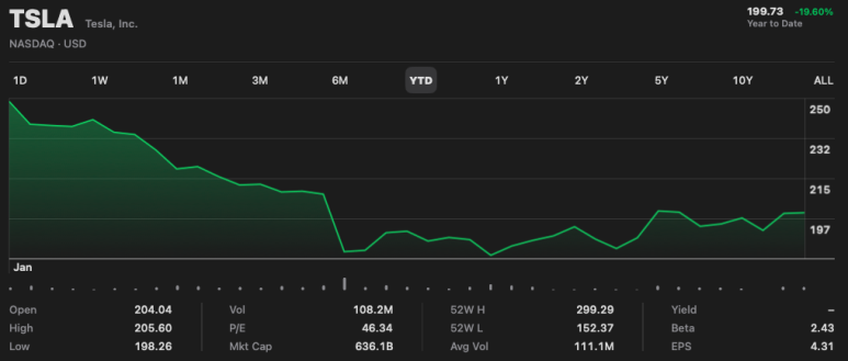2024년에 들어 테슬라가 다른 빅테크에 비해 완전히 저조한 모습을 보여주면서 연초대비 약 -25%정도 하락을 하여