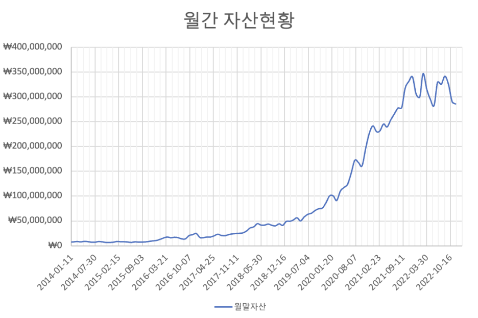 최근 주식시장이 변동폭이 크고 하락이 심해서 연초대비 마이너스를 기록하고 있으며, 제 포트폴리오에 달러자산 비중이 크기 때문에 최근 달러약세로 자산가치와 배당금 측면에서는 최근 1달동안 좋지않은 모습을 보이고 있으며, 원화 기준으로 매달 받는 배당금의 금액이 조금 줄었습니다