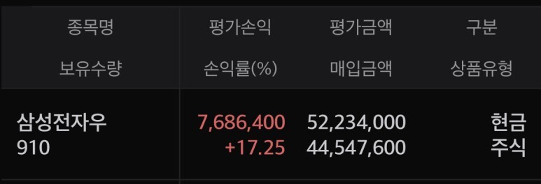 1. 삼성전자우 910주