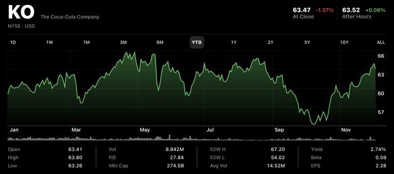 4. 코카콜라 - 325주 (+5주)