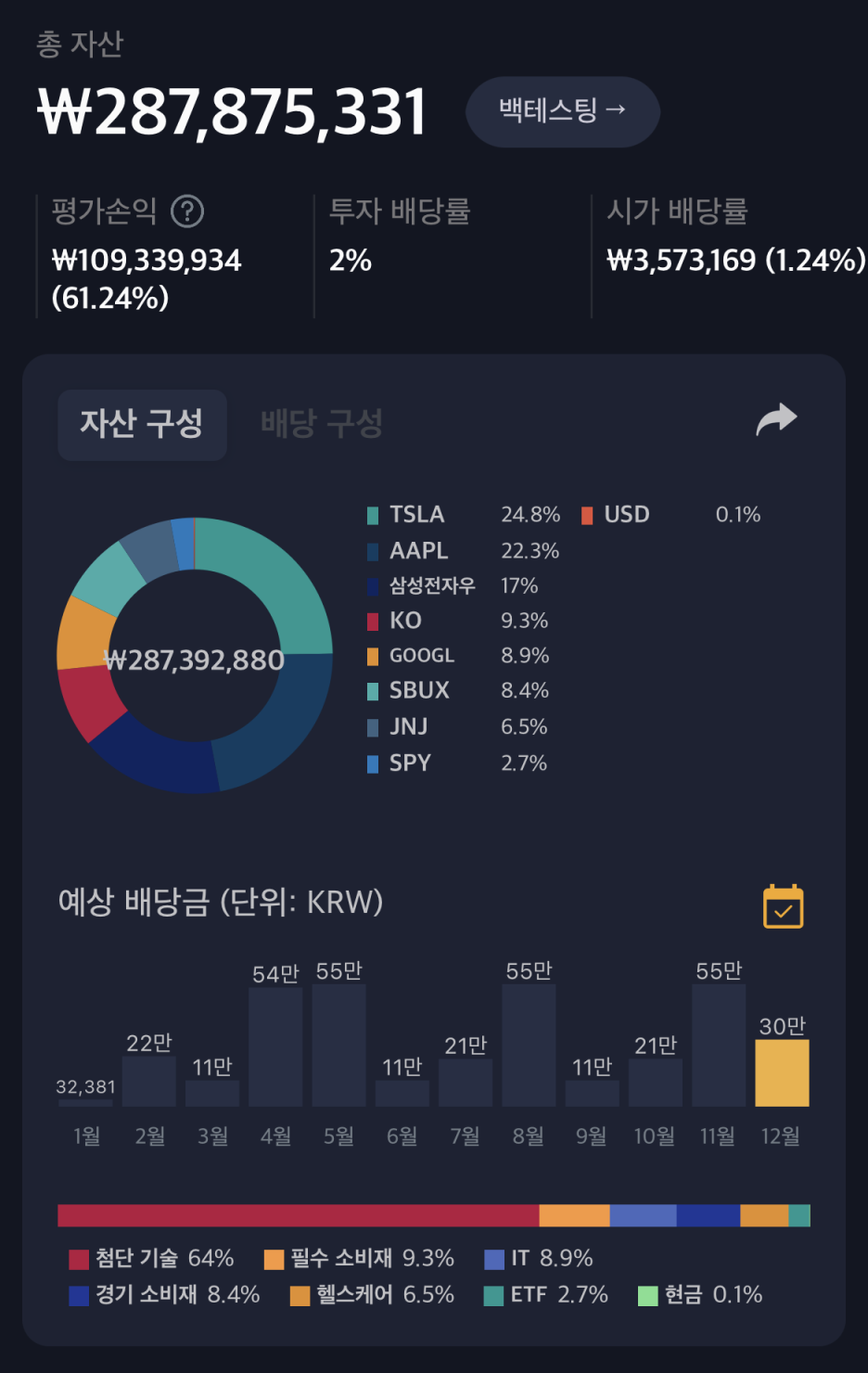 2022년 12월 8일 보유 주식 & 배당금