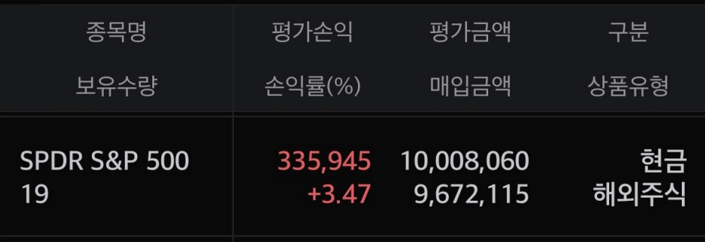 8. SPDR S&P500 - 19주 (+4주)