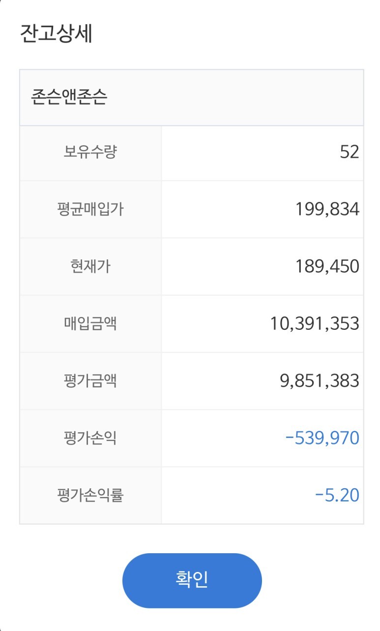 최근 포트폴리오 조정 때문에 존슨&존슨 주식매입에 집중을 하고 있는데