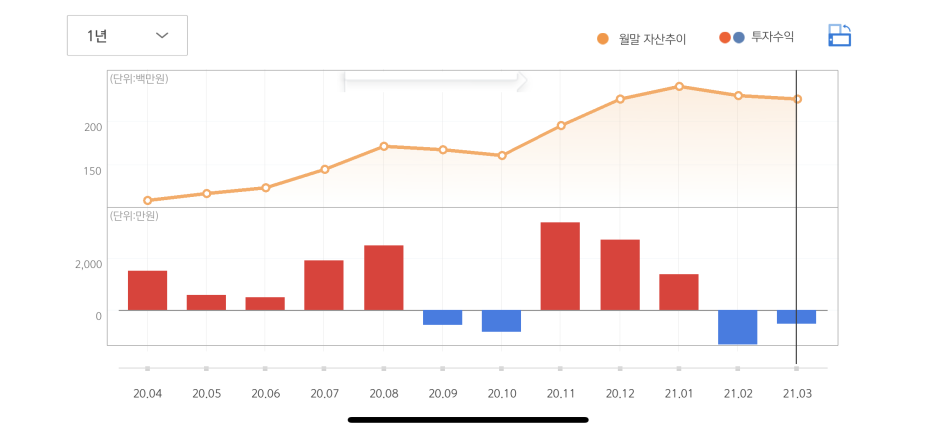 2021년 2월과 3월의 경우 작년 코로나가 발생했던 2월과 3월같이 순자산이 줄어들었습니다ㅠㅜ