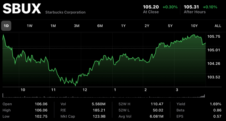 월급날인 3월 5일에 스타벅스 20주를 추가매수를 하였으며, 3월에 스타벅스의 배당금이 입금이 될 예정입니다^^
