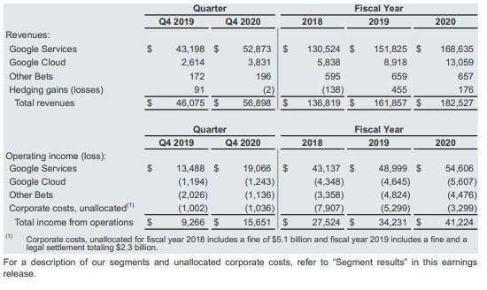 2020년 4분기 & 2020년 연간 재무재표 (출처: https://abc.xyz/investor/static/pdf/2020Q4_alphabet_earnings_release.pdf?cache=9e991fd )