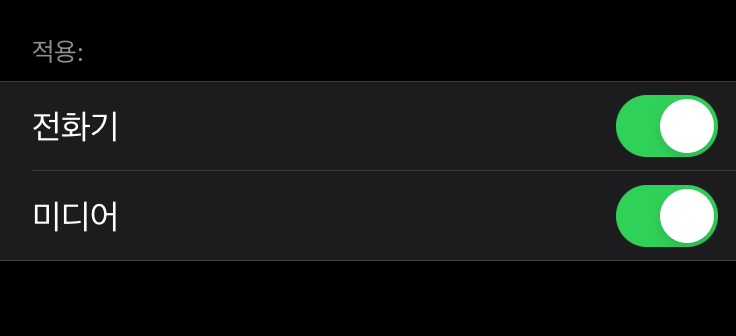 또한 밑에 보시면 설정한 음향을 전화할때나 미디어 중 선택적으로 적용해서 조정한 음향을 분리해서 사용할 수도 있습니다~
