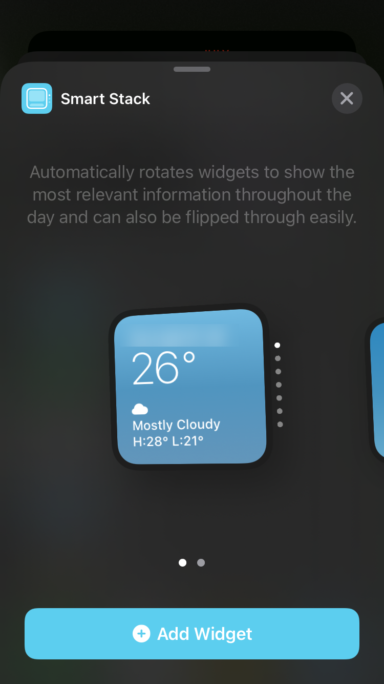 위젯들을 확인할 수 있는 기능을 지원해 주는 것이고 이 기능을"Smart Stack"이라고 합니다.