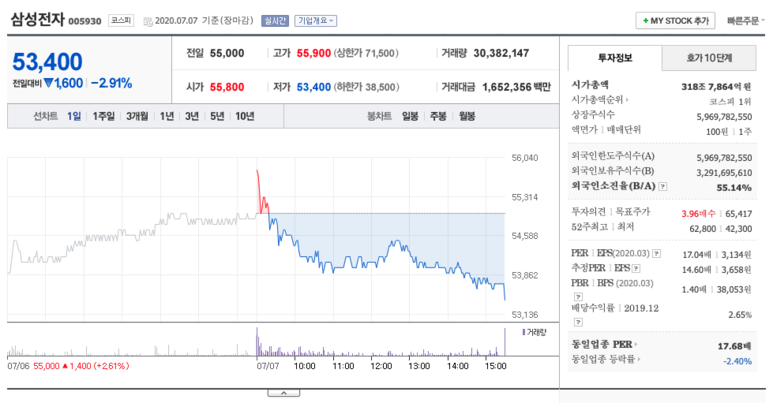 삼성전자 기업정보 (출처: 네이버 증권)