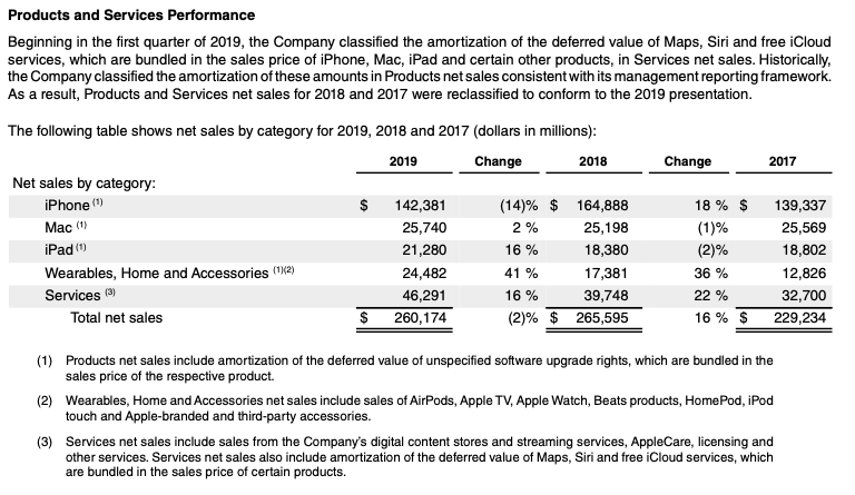 2019년 Apple Annual Report 중 (출처: 애플 공식 홈페이지, 링크: https://s2.q4cdn.com/470004039/files/doc_financials/2019/ar/_10-K-2019-(As-Filed).pdf )