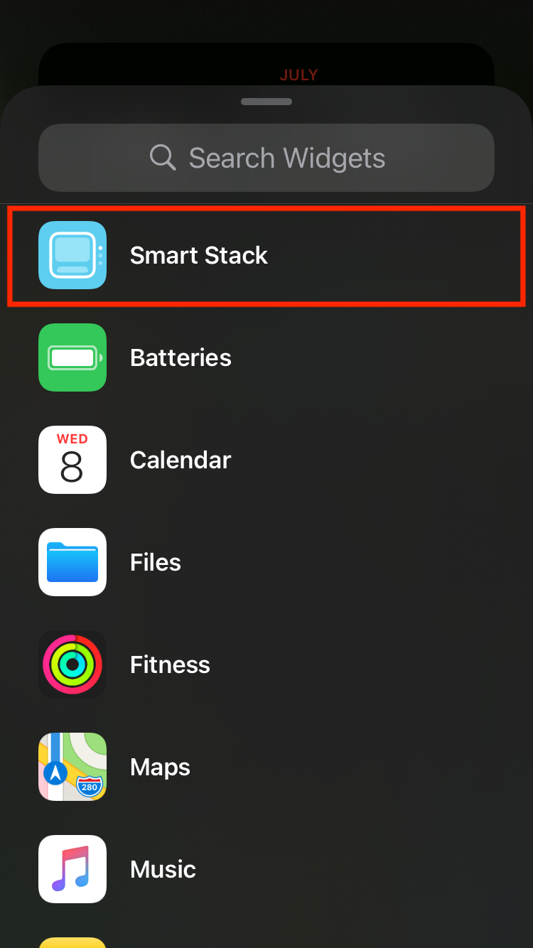 아래로 스크롤해서 내려가시면 아까 보여드린 위젯 옵션 중 "Smart Stack"을 눌러서 들어간 다음~