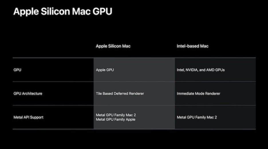 WWDC 2020 개발사 세션 중 - Apple Silicon Mac GPU (출처: WWDC 2020 개발자 키노트)