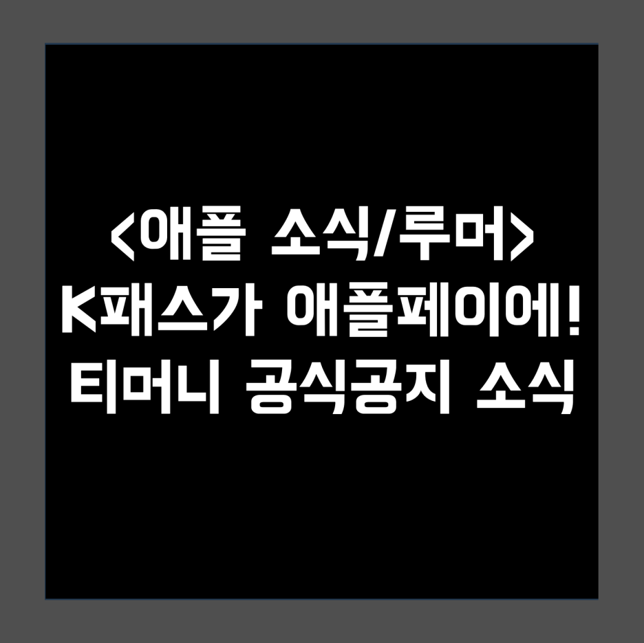 하지만 최근 티머니 측에서 공식 채널을 통해 "애플페이 티머니 서비스에 K-패스를 도입할 예정"이라고 발표하면서 이 모든 불편함이 해소될 전망입니다.