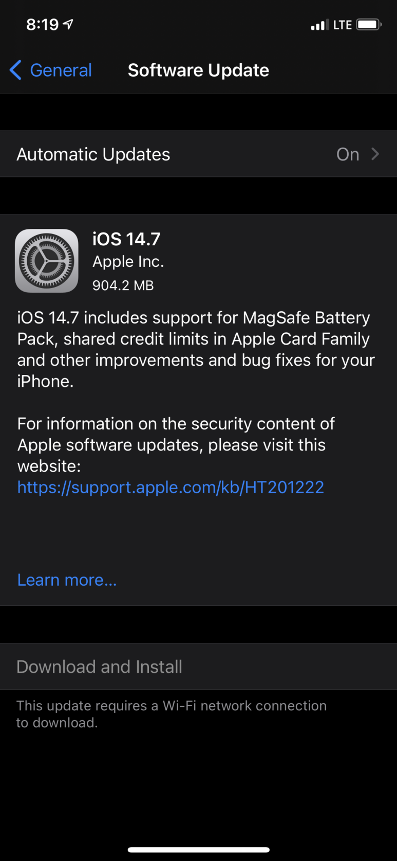 이번 iOS 14.7은 iOS 15이 나오기전에 마지막 업데이트가 될 것 같으며 왠만하면 이번 버전으로 업데이트를 진행하는 것이 좋을 것 같습니다.