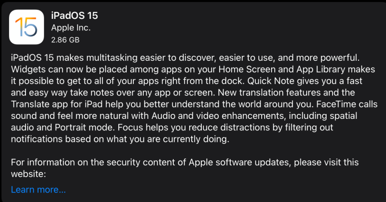 아이폰은 iOS15.2, 아이패드는 iPadOS15.2 버전으로 업데이트 크기는 약 730MB ~ 900MB이며
