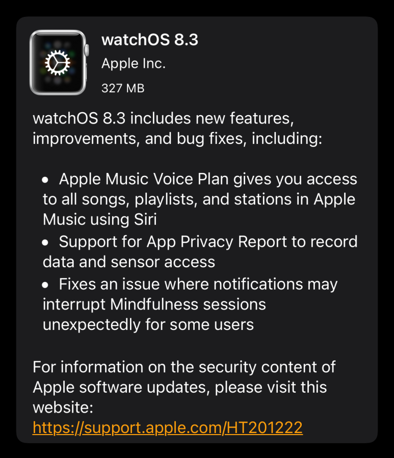 애플워치 WatchOS 8.3은 약 330MB입니다.