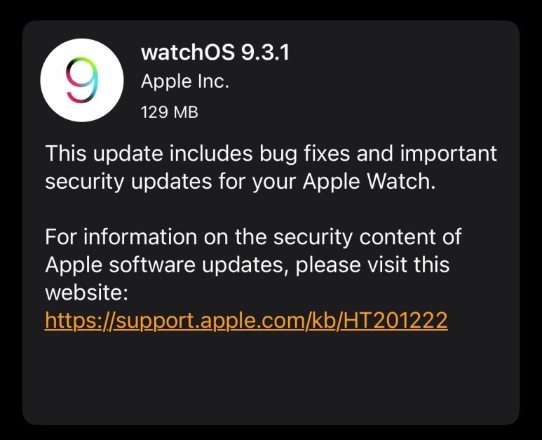 애플워치 WatchOS 9.3.1는 129MB(애플워치 4세대 기준) 입니다.