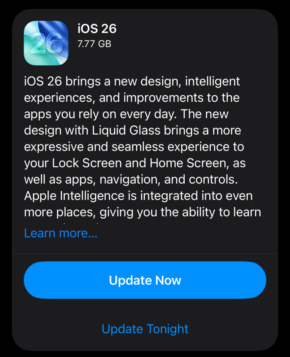이번 업데이트는 iOS 26의 첫 번째 업데이트로 대대적인 디자인 변결과 더불어 신기능이 대폭 추가가 되었음으로 업데이트를 하시는 것을 추천드립니다~^^