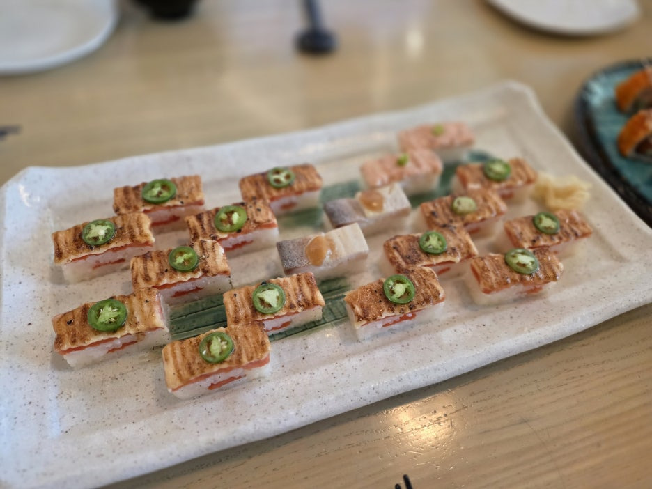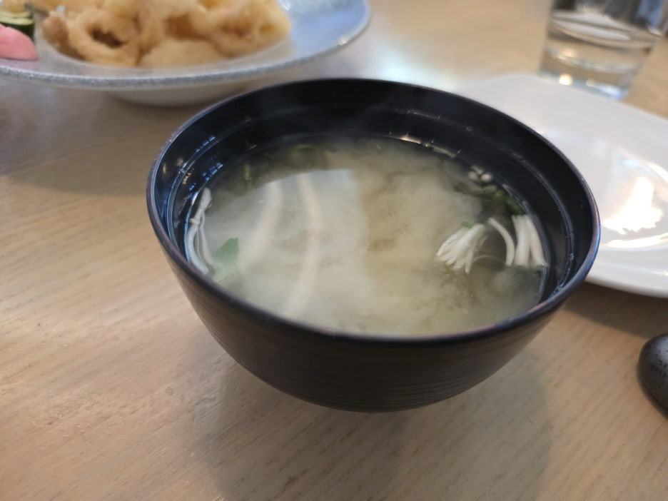 식사로 저희는 Miso Soup, Surf&Turf Roll, Miku Roll, Oshi Sampler, Salmon Oshi, Bluefin Trio, Aburi Nigiri selection, Calamari를 시켜서 먹었는데...